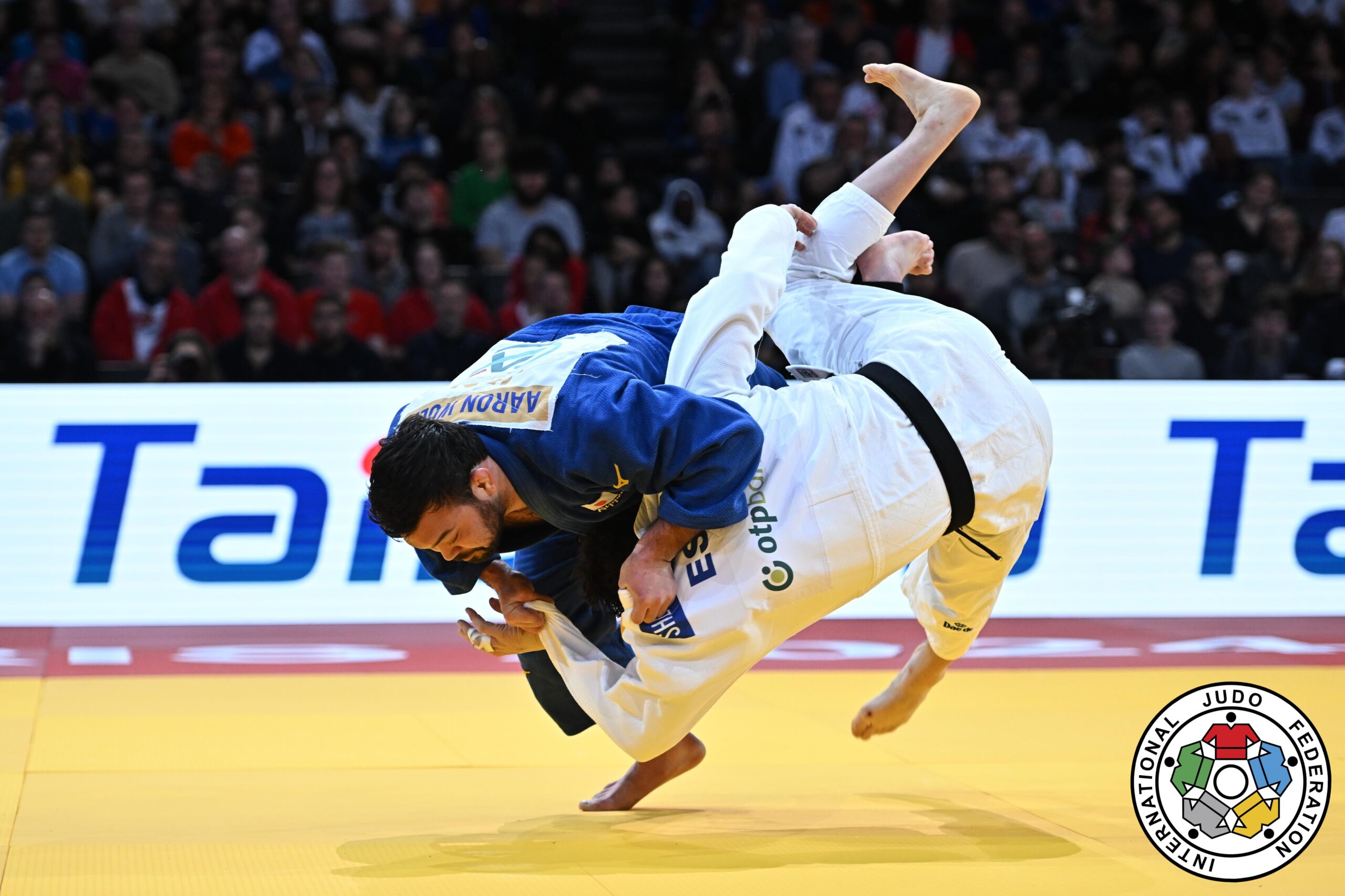 Foto: Der Japaner Aaron WOLF (blau) ist erster Olympia-Gegner unseres Aaron FARA - @IJF / Tamara Kulumbegashvili