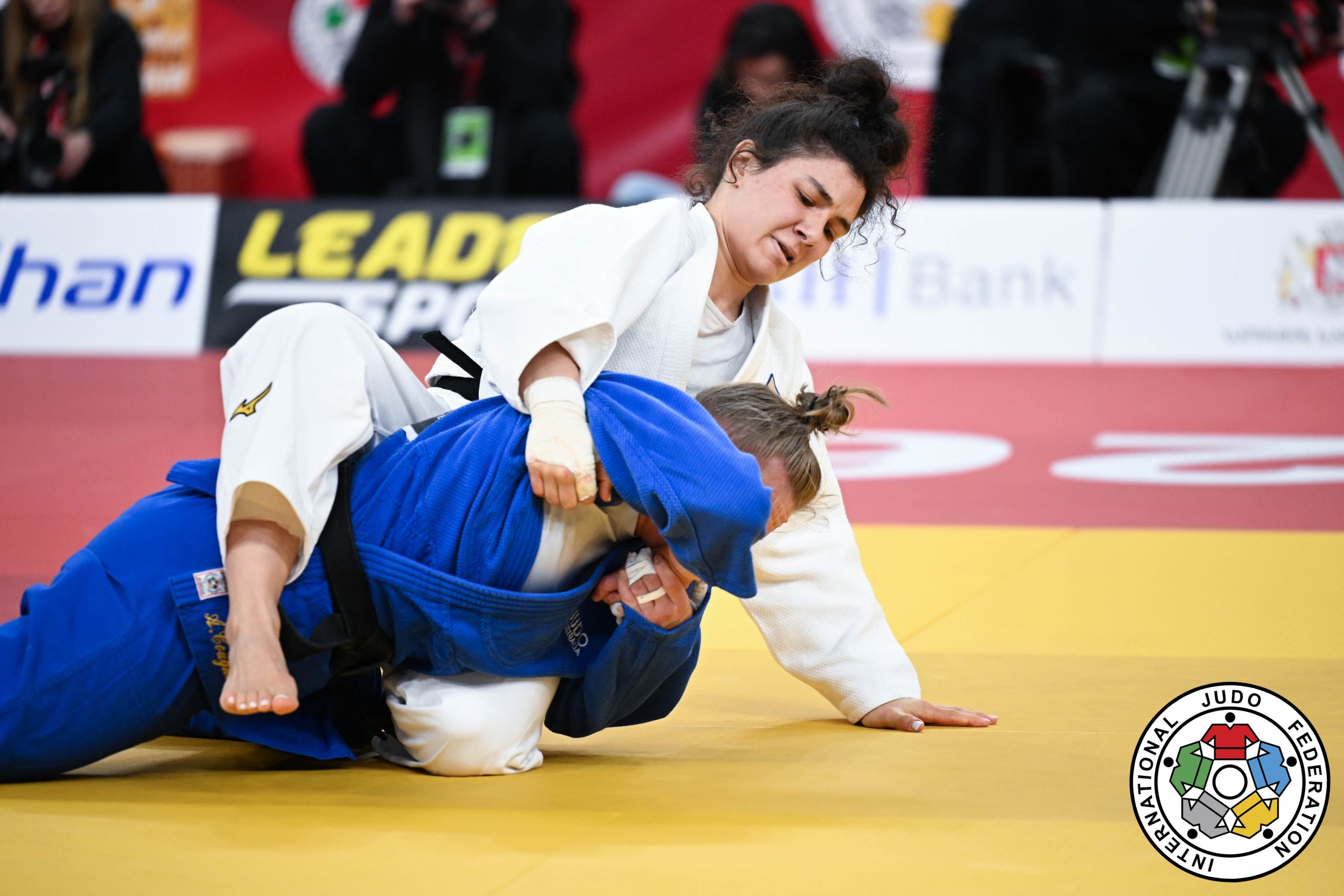 Foto: Siegte für Russland und hörte wieder ihre Nationalhymne: Madina TAIMAZOVA (weißer Judogi) – @IJF / Tamara Kulumbegashvili