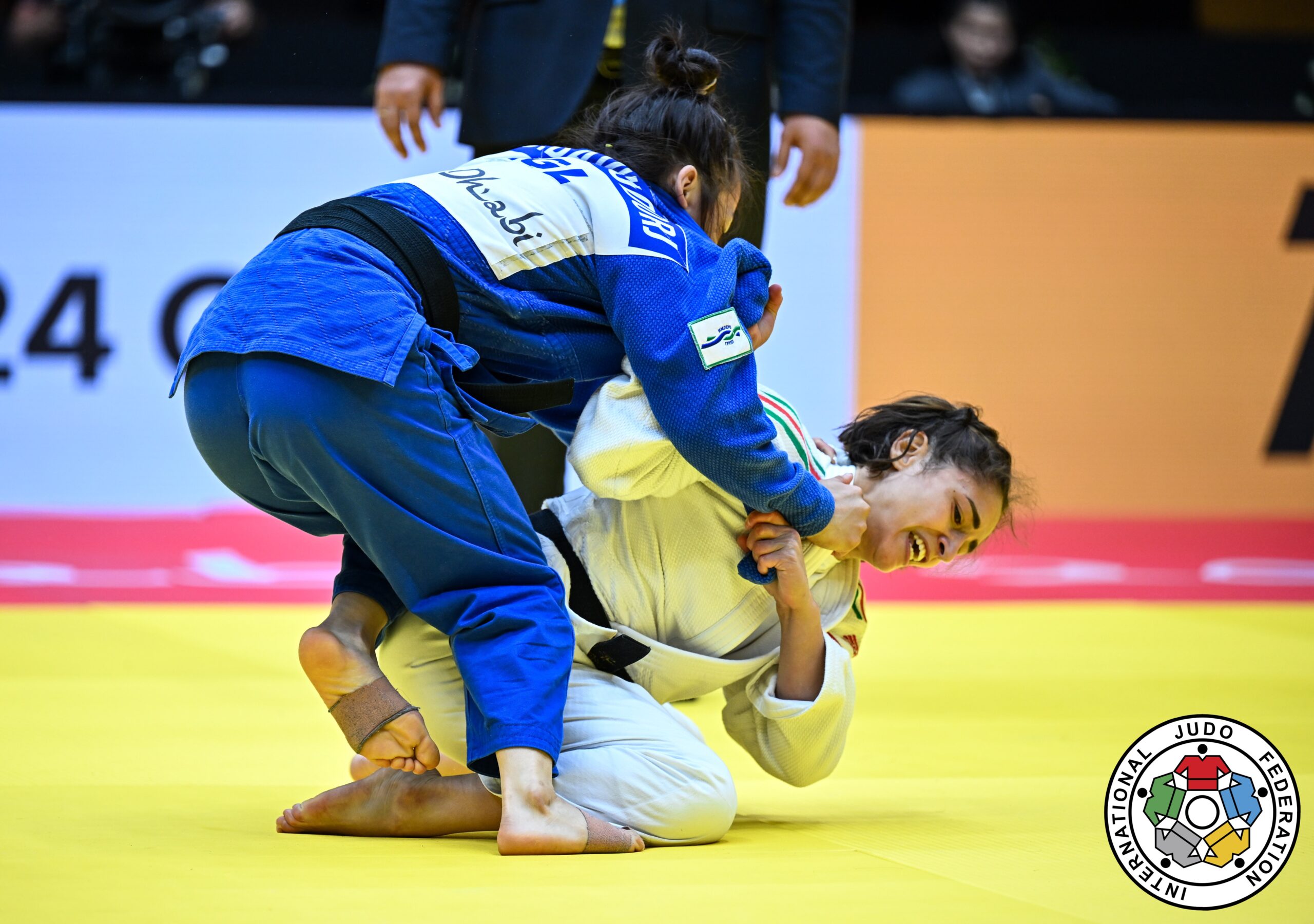Am Sonntag begann sie also, die – vom Zeitpunkt her – bei vielen ungeliebte WM in der Mubadala-Arena von Abu Dhabi. Mit einer Überraschung – denn am ersten Tag bei drei Gewichtsklassen schaffte es kein Japaner ins Finale! Weil neben Uta Abe auch Takato (ist ebenso vierfacher Weltmeister) fehlte und sein Landsmann Taiki Nakamura im Semifinale bis 60 Kilo am Georgier Giorgi Sardalashvili mit Waza-ari scheiterte, „nur“ Bronze holte. Junioren-Weltmeister Sardalashvili gewann in Folge Gold, wobei er sich im Golden Score nach mehr als sechs Minuten gegen Yung Wei Yang (TPE) gerade noch aus dem Osaekomi befreien konnte und selbst einen Konter landete. Mit 20 Jahren ist er jetzt der jüngste georgische Weltmeister aller Zeiten! Die erste Goldene dieser WM ging bei den Frauen bis 48 Kilo an die Mongolei durch Baasankhuu Bavuudorj, die das Finale gegen Assunta Scutto für sich entschied. Die Italienerin wurde nach einem Seoi-Nage-Ansatz mit Sumi-gaeshi entscheidend gekontert. Es ertönte aber doch noch die italienische Hymne an diesem Tag – denn bis 52 Kilo trat Odette Giuffrida die Abe-Nachfolge mit einem Waza-ari-Sieg über die Usbekin Diyora Keldiyorova an. Damit ist Italien unter den 107 Nationen (658 Judoka) erster Leader in der Medaillenwertung.