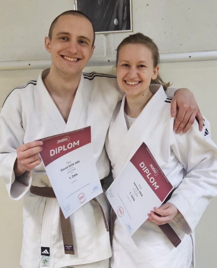 Und zwei Wiener Judoka des PSV haben am Wochenende in Innsbruck die Dan-Prüfung erfolgreich absolviert. Janine Jira (27) und David Gov Ari (26) heißen die beiden. David ist übrigens der Bruder von Polina Gov Ari, die seit geraumer Zeit das Sekretariat des Judo-Landesverbandes Wien betreut.
