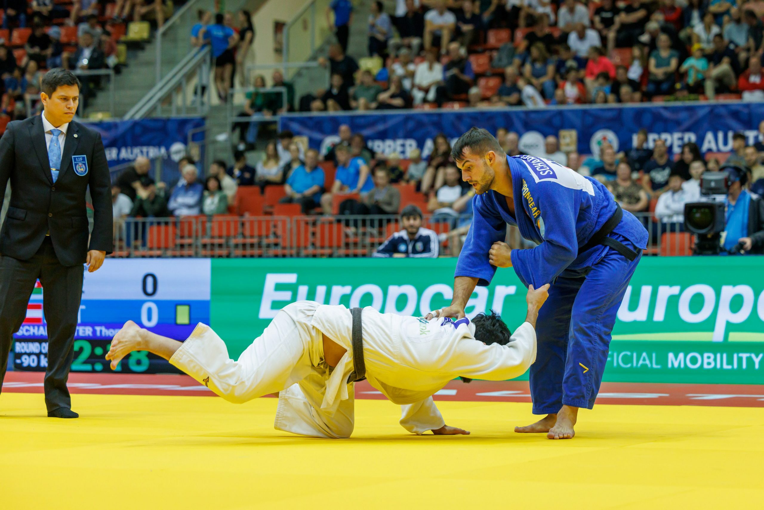 Foto: Thomas SCHARFETTER (blauer Judogi) kehrt auf die internationale Matte zurück - @Judo Austria / Oliver Sellner